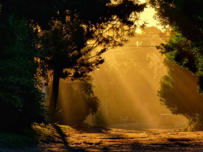 El sendero de conchilla era perpendicular a la ruta y teníamos que caminarlo más de veinte minutos; y, luego de pasar la vía del tren (por la cual nunca jamás vi pasar ninguno), había que doblar a la izquierda. Pero en ese punto exacto es donde me gustaba detenerme. Y girarme. Y comprobar que desde allí la ruta ya no se veía, ni los autos. Ni los ómnibus.